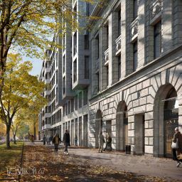 Клубный корпус - всего 4 этажа, вид на роскошный Большой проспект Васильевского острова.