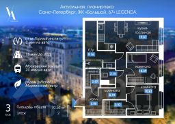 2кк - 70 кв. м. вид на Большой проспект Васильевского острова