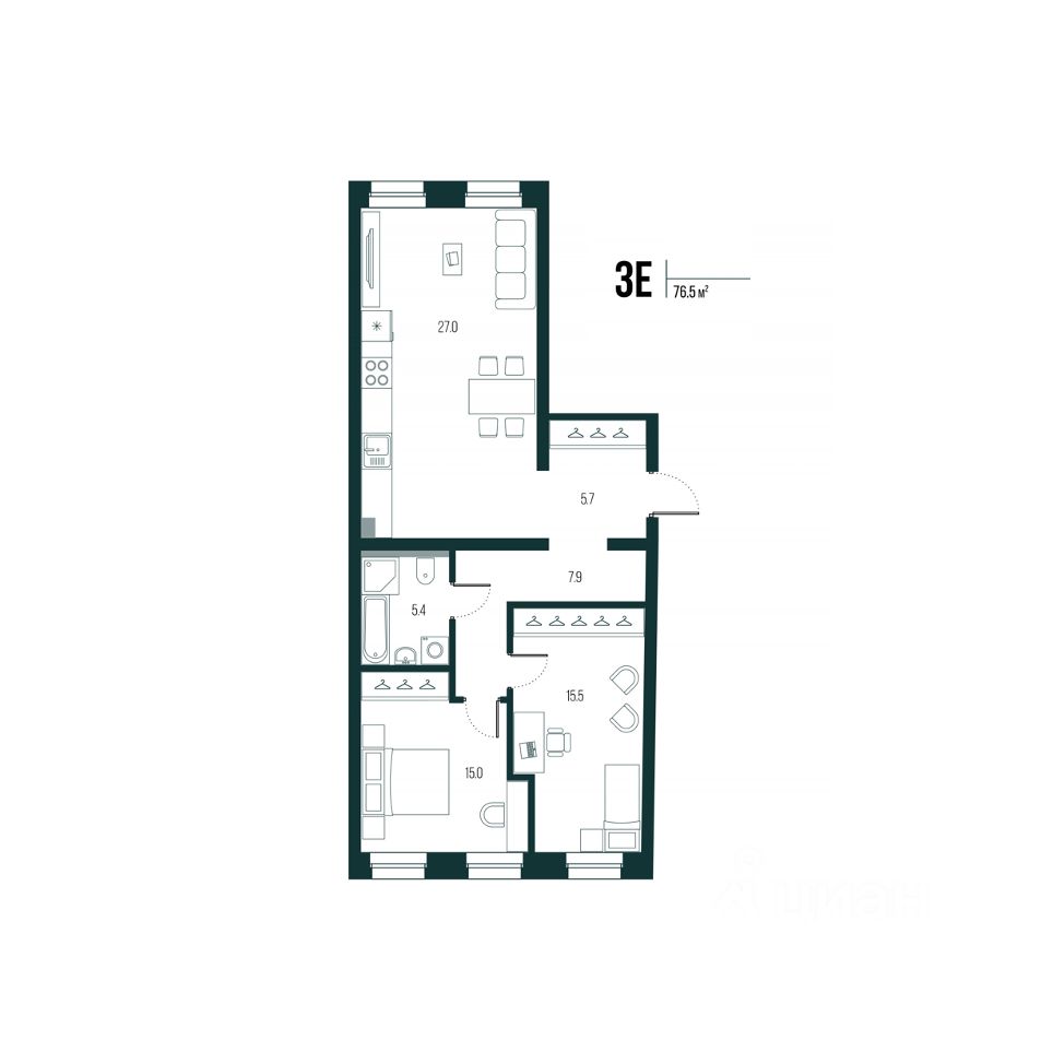 - Высота потолков 3.4 м, что значительно увеличивает объем пространства.