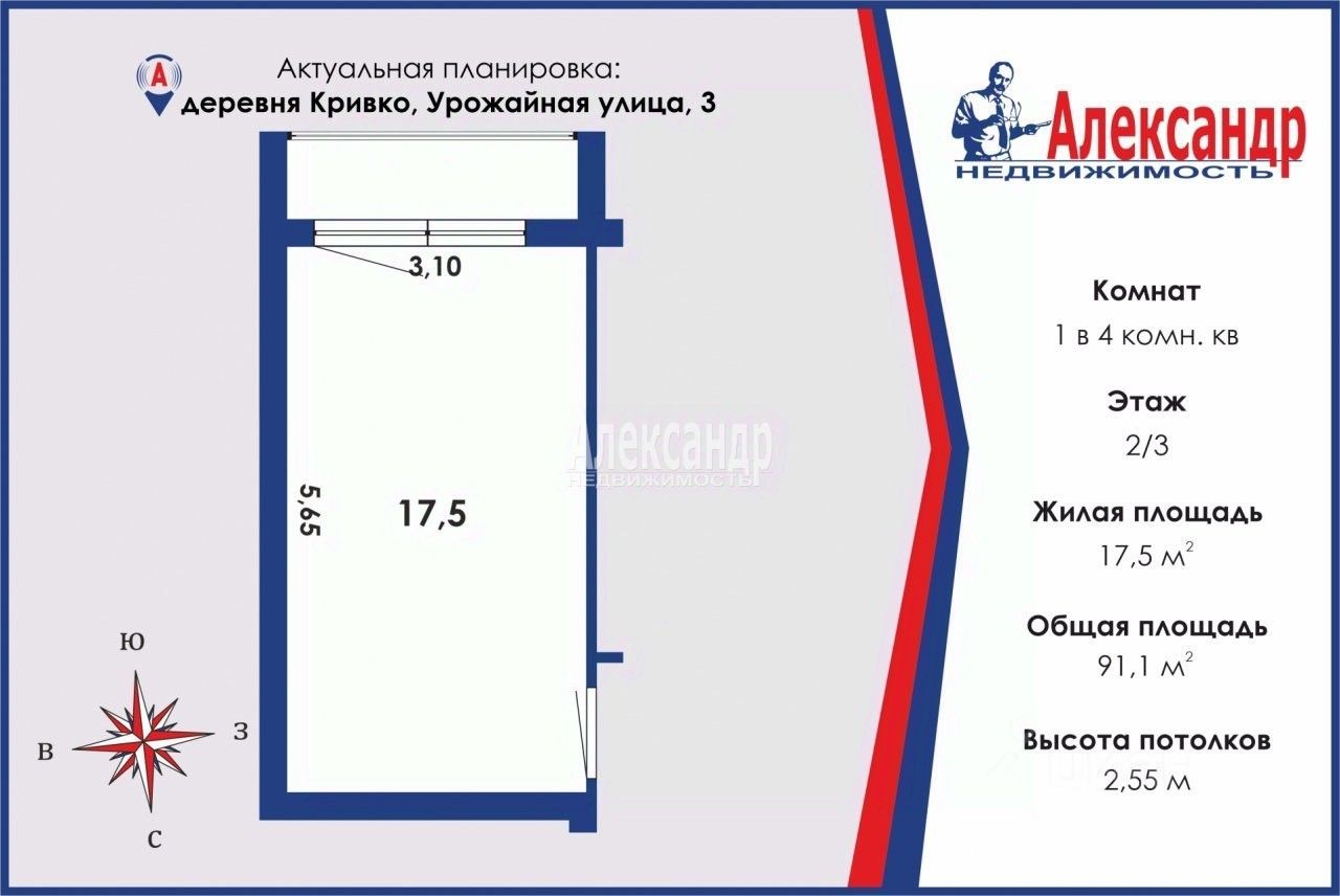 1693811 Продаётся комната в хорошем состоянии, площадью 17,5 кв.м. с лоджией в четырёхкомнатной коммунальной квартире, на втором этаже трёхэтажного крупнопанельного дома, в деревне Кривко Сосновского сельского поселения Приозерского района. Соседи спокойные, доброжелательные. В двух комнатах никто не проживает.