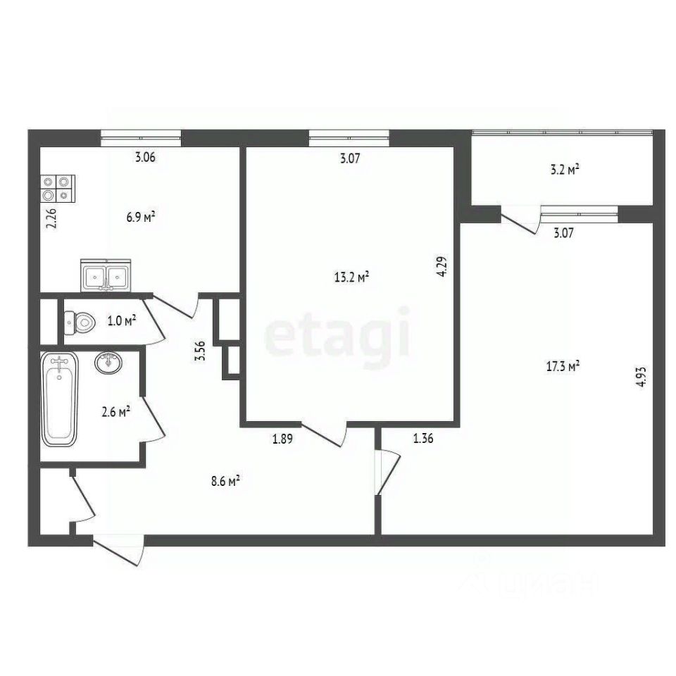 Уютная и светлая двухкомнатная квартира площадью 50,2 м², расположенная на 9 этаже современного монолитного дома.