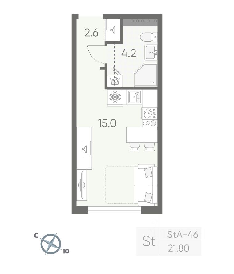 Общая площадь21,8 м²