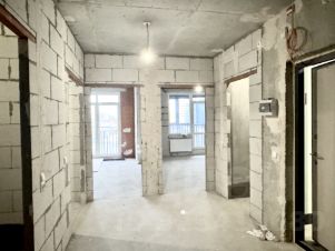 Планировочное решение квартиры удобное, соответствует всем современным стандартам. В квартире две изолированные комнаты: площадью 17.9 кв.м. с балконом; площадью 14.9 кв.м., кухня-гостиная 15.1 кв.м. с балконом, гардеробная, два санузла, холл 11 кв.м., окна  квартиры выходят на две стороны. Состояние квартиры: без отделки.