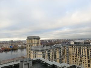 - Всё близлежащие строительные работы по ЖК застройщиком завершены, архитектура и высотности соседних домов определена и теперь можно спокойно любоваться видами Санкт Петербурга с высоты птичьего полета, встречать рассветы и провожать закаты.