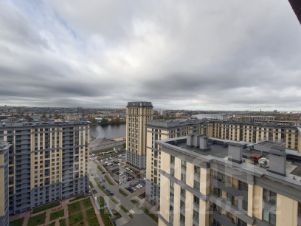 Сама квартира видовая, торцевая, расположена на последнем 23 этаже 9 секции и вид из окон получается на три стороны. Можно видеть центр города и все его достопримечательности, а так же наблюдать за судоходством по реке Нева или по праздничным дням лицезреть салюты.