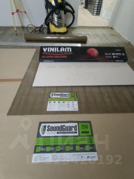 - Выполнена шумоизоляция полов в комнатах и кухни по проекту SaundGuard Basis+ с финишным покрытием замковым кварцвинилом 7,5 мм толщиной от Vinilam art.I967111 Дуб Розовато-Лиловый, со встроенной шумоизоляционной подложкой.