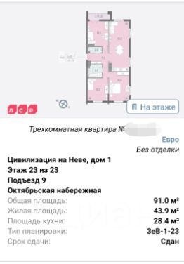 Здравствуйте уважаемые покупатели! Предлагаю к рассмотрению данную уникальную по планировке и площади (89.4 общая , фактическая приведённая 91м²), трёхкомнатная квартиру, которая находится в современном, новом ЖK Бизнес класса - Цивилизация на Невe ул. Дыбенко д.2.