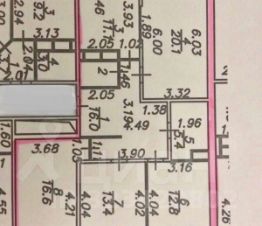 Общая площадь 98 кв. м., кухня 11,1 кв. м., большая светлая гостиная 20.1 кв. м., три спальни (16.6, 13.4, 12.8) кв.м., огромный коридор 16 кв. м. Квартира двухсторонняя. Окна выходят на тихую улицу и во двор.