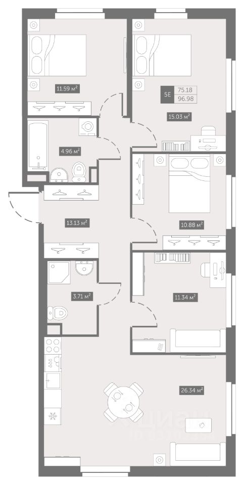 - Доступно 3 варианта отделки на выбор: черновая, предчистовая (White Box) и чистовая;