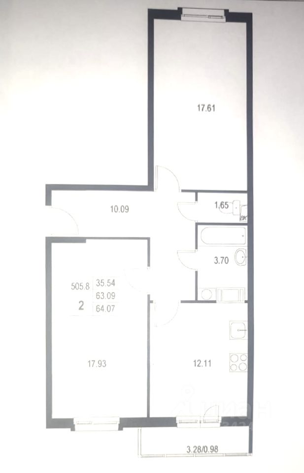 + Комнаты 17.61 м2 и 17.93 м2, также правильно формы, что позволит вам эргономично организовать пространство.