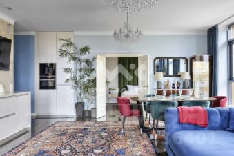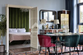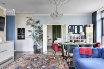 Квартира с двумя спальнями в ЖК "Avatar", площадью 112 м². Просторная угловая кухня-гостиная с панорамными окнами, выходящими на зелёные кроны деревьев. Кухня оборудована премиальной техникой Neff (включая встроенную кофемашину); австрийской фурнитурой Blum. Утро здесь начинается с ароматного кофе и пения птиц за окном.
