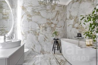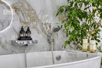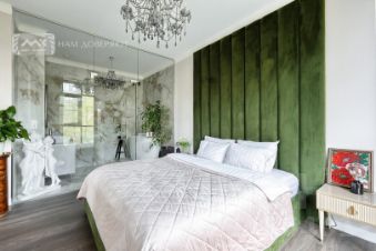 Главная спальня дополнена санузлом с отдельно стоящей ванной за стеклянной перегородкой; вторая спальня с большим шкафом может стать кабинетом. Также предусмотрена отдельная гардеробная с постирочной зоной. Во втором санузле  сауна.