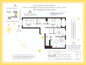 Арт. 124005585 В продаже квартира с 3 спальнями и кухней-гостиной с дизайнерским ремонтом в Адмиралтейском районе в ЖК Галактика.