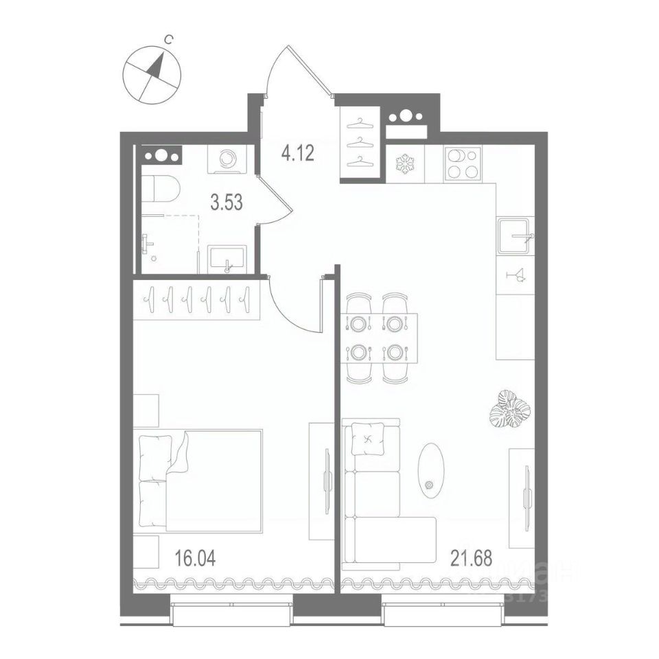 Общая площадь45,37 м²