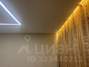 -Натяжной потолок со световыми линиями, встроенный карниз в натяжной потолок с подсветкой. Выпирающих люстр нет)