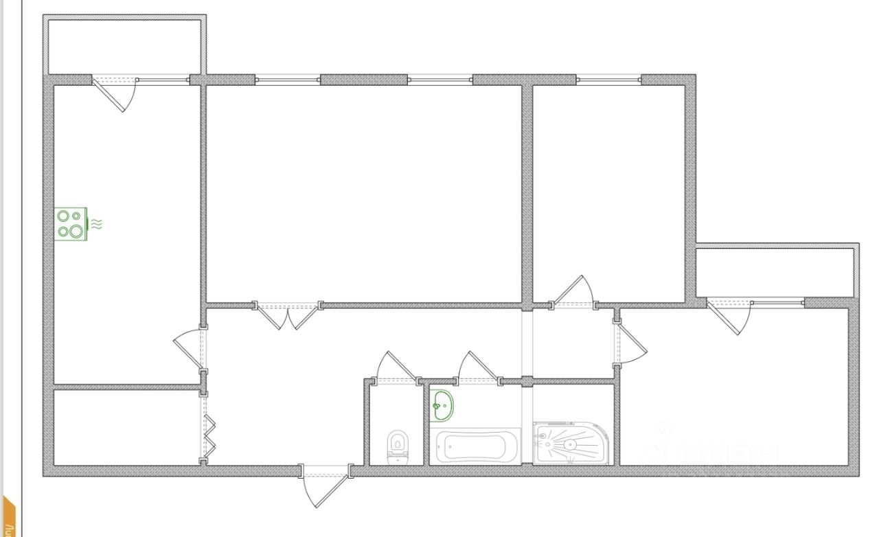 Квартира укомплектована мебелью и техникой: кухня, шкафы, прихожая, зоны хранения, кровати, предметы интерьера. Встроенная мебель и техника входит в стоимость. Часть мебели в стоимость не входит.