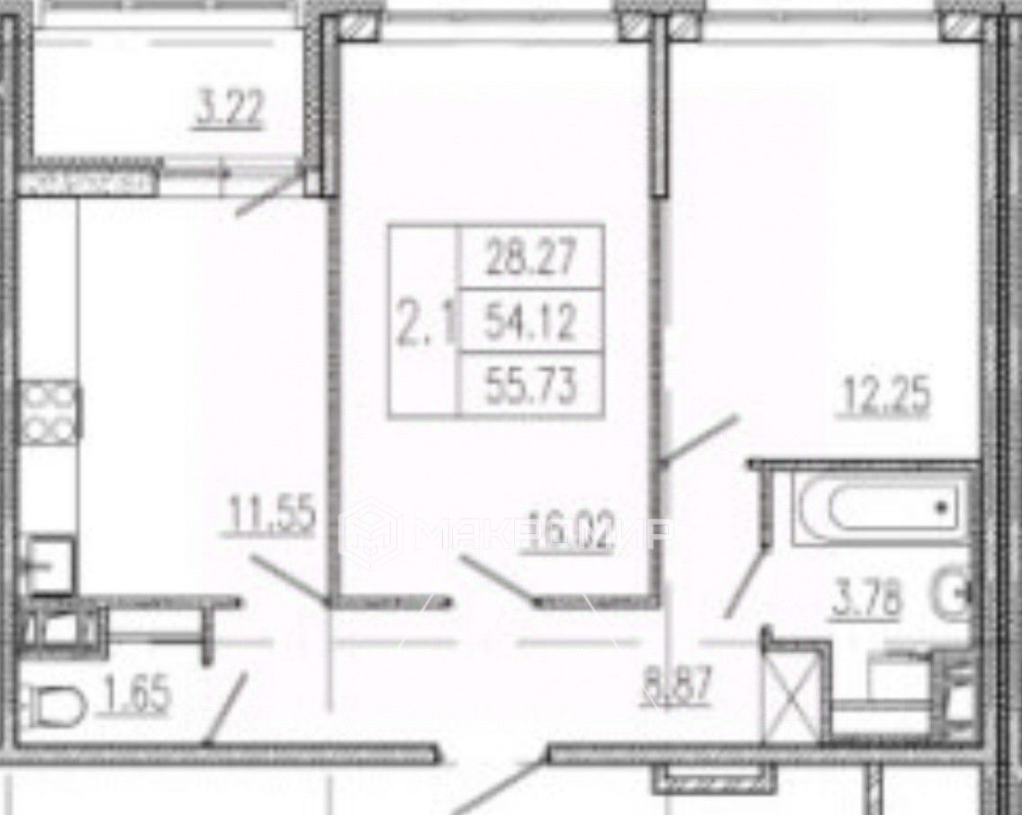Жилая площадь 28,27 м2 (16,02+12,25)