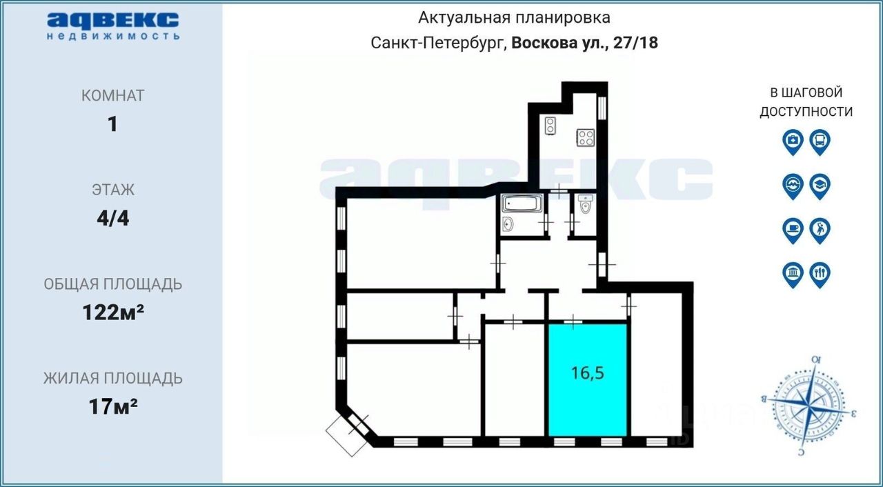 В комнате сделан ремонт, установлены новые радиаторы отопления, стеклопакеты, заменены трубы и электрика. Есть вся необходимая мебель и техника. В коридоре много места для хранения. В кухне чисто.