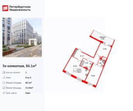 Удобная, классическая, функциональная европланировка, большая кухня-гостиная 28.49 м², просторная прихожая 15.36 м². Общая площадь квартиры - 86.1 м², жилая  32.64 м², высота потолка 3 м.