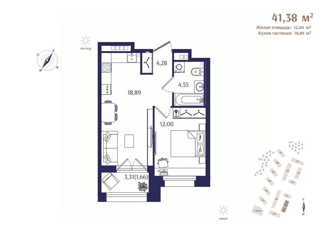 Функциональная однокомнатная квартира - Формат Light, которая подойдет для комфортного проживания небольшой семьи.