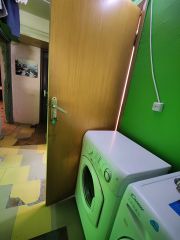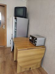 В комнате установлен стеклопакет. Диван, холодильник, стол, телевизор, стиральная машина-автомат, оборудованное место на кухне - все остается новому хозяину. Имеется место хранения в общей кладовке рядом с входной дверью в квартиру. Соседи хорошие, адекватные.