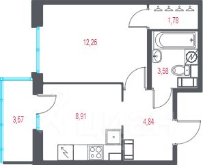 Квартира 186 в корпусе 3 от застройщика в ЖК "Город-спутник Южный"