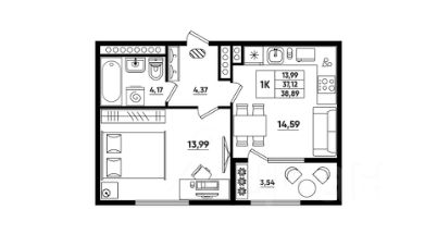 1-к квартира 38,89 м2 у Юнтоловского парка с экономией до 1.500.000₽ на ремонте за счет чистовой отделки и сопровождением сделки "под ключ" + закрепляем за вами персонального юриста для полной безопасности сделки!