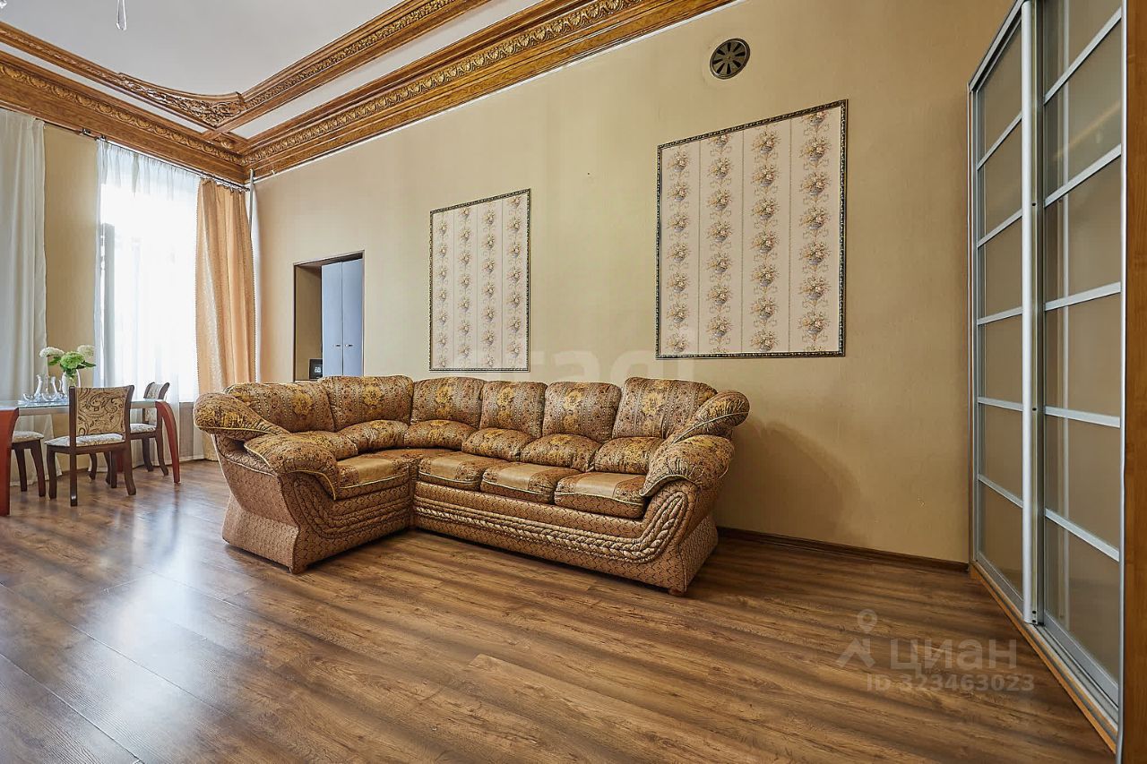 Просторная квартира площадью 347 м² расположена на втором этаже знакового здания на Невском проспекте со входом непосредственно с главной городской магистрали.