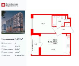 Удобная, классическая, функциональная европланировка, большая кухня-гостиная 17.03 м², вместительная прихожая 3.24 м². Общая площадь квартиры - 34.37 м², жилая 10.14 м², высота потолка 2.77 м.