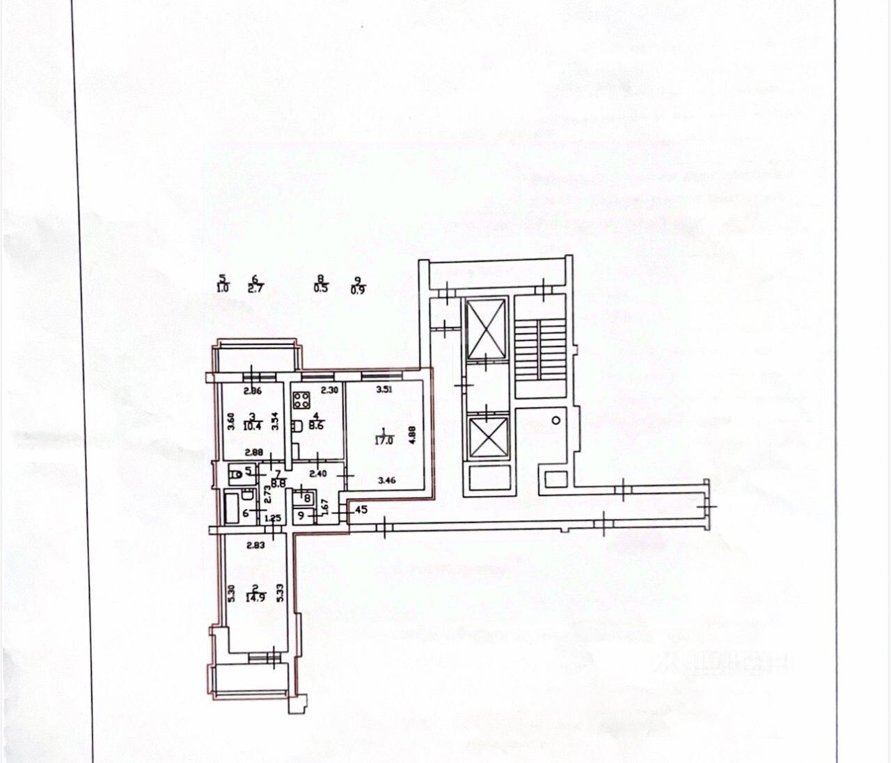 Квартира расположена на 10 этаже 12-этажного кирпичного дома 1980 года постройки. Общая площадь — 64,8 кв. м, из которых 42,3 кв. м — жилая площадь. Высота потолков — 2,7 м, что создаёт ощущение простора. Комнаты изолированы, площадь комнат — 17, 10,4 и 14,9 кв. м, что позволяет каждому члену семьи иметь своё пространство.