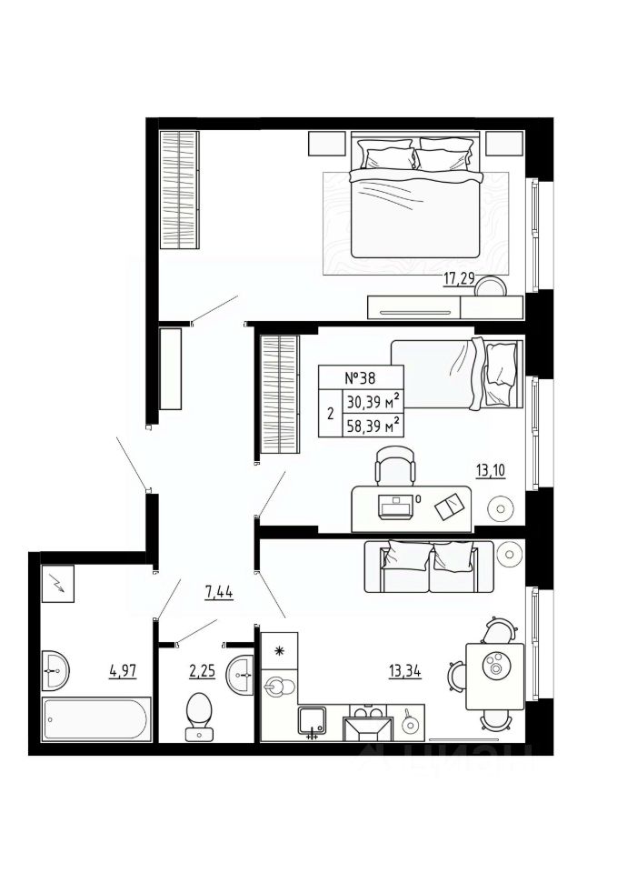 Продаётся 2-комнатная квартира в строящемся доме (Корпус 5), срок сдачи: IV-кв. 2025, общей площадью 58.38 кв.м., на 1 этаже. ЖК "Аннино Сити" как и любое жилье в стиле Urban Village имеет все достоинства современных жилых комплексов в мегаполисе, но при этом есть ряд неоспоримых преимуществ загородной жизни: малоэтажность, хорошо продуманная инфраструктура внутри комплекса, собственные котельные, охраняемые территории с зелеными насаждениями, пешеходные и зоны отдыха, детские и спортивные площадки, а также достаточное количество парковочных мест.