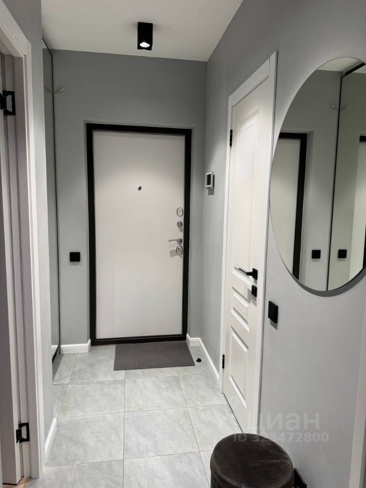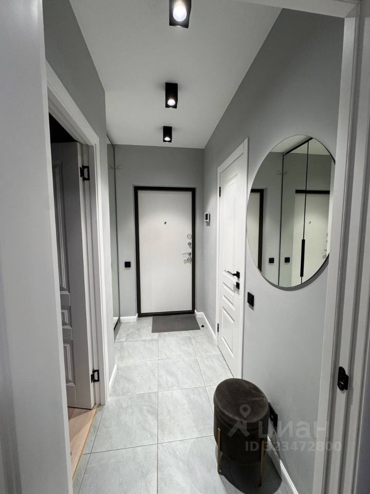 При входе вас встречает встроенный вместительный зеркальный шкаф.