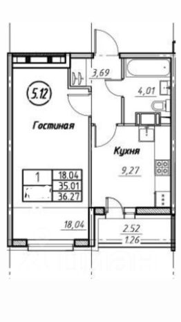 Современная, уютная и полностью готовая к проживанию 1-комнатная квартира площадью 36,27 м².