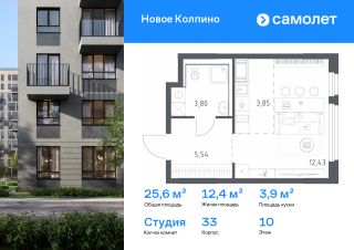 Строим кварталы для жизни с заботой о будущем. Предлагается квартира студия комфорт-класса 25,62 кв.м в корпусе 33 на 10 этаже, в ЖК "Новое Колпино"