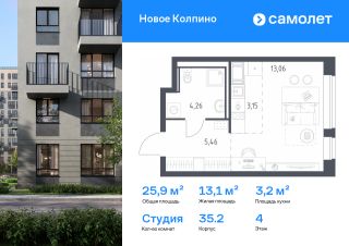 Строим кварталы для жизни с заботой о будущем. Предлагается квартира студия комфорт-класса 25,93 кв.м в корпусе 35.2 на 4 этаже, в ЖК "Новое Колпино"