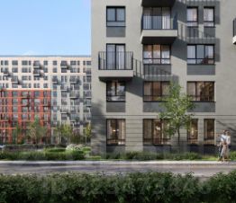 Корпуса высотой 11 этажей с французскими и панорамными балконами отделаны штукатуркой и облицовочным кирпичом. Вдохновение для палитры нам подарили оттенки рассветного неба: терракотовый, персиковый, песочный.