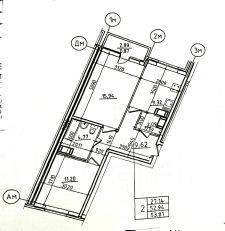 Просторная и светлая квартира площадью 53 м² на 9-м этаже.