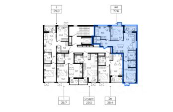 — Общая площадь: 77,6 м²