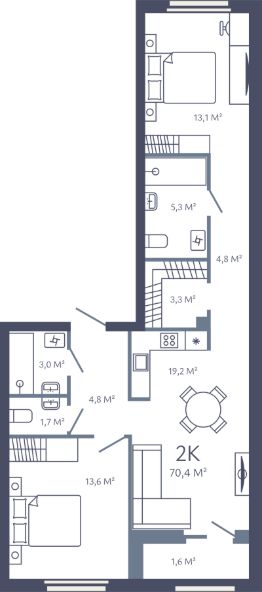 Продаётся 2-комнатная квартира в строящемся доме (Дом 1), срок сдачи: I-кв. 2028, общей площадью 70.4 кв.м., на 2 этаже. Жилой комплекс "Лендлер" - это современный малоэтажный проект комфорт-класса, расположенный в динамично развивающемся районе Кудрово, в доступности от станции метро "Улица Дыбенко".