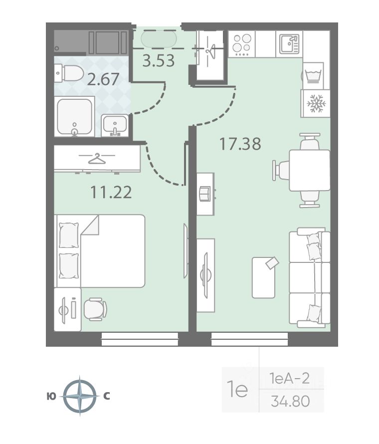Продается 1-комнатная квартира в ЖК "Морская миля" на 22 этаже. Общая площадь составляет 34.60 кв. м. Квартира с чистовой отделкой. Жилой комплекс "Морская миля" располагается по адресу Санкт-Петербург, Красносельский.