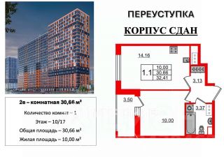 Арт. 108423808 Добрый день! Продаем по ПЕРЕУСТУПКЕ СВЕТЛУЮ и ПРОСТОРНУЮ ОДНО-комнатную квартиру с ЕВРО-планировкой на правом берегу Невы в жилом комплексе "Город звезд". Сдача дома до 30.06.2025 г.