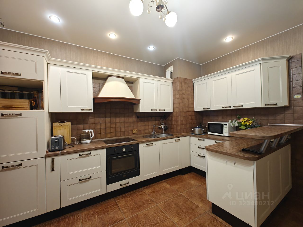 Просторная кухня 13 м² правильной формы, оснащённая стильным и функциональным кухонным гарнитуром с встроенной техникой: морозильная камера, посудомоечная машина, духовой шкаф, вытяжка - всё от брендовых надёжных производителей.