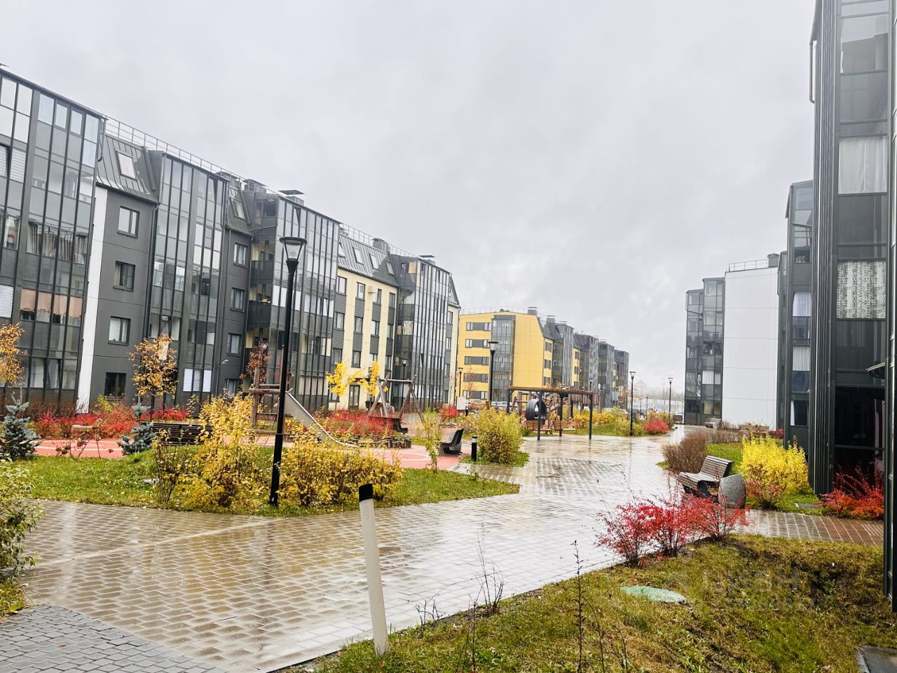Во дворах размещены детские площадки, зоны отдыха к тому же они закрыты от сквозного проезда автомобилей.