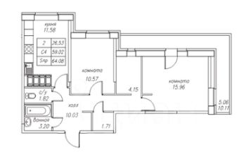 - Спальная 15.96 квм. + лоджия 10.96 квм.
