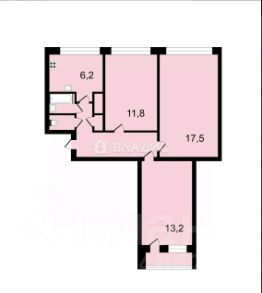 -3 изолированные комнаты 11,8+17,4+13,2 м2;
