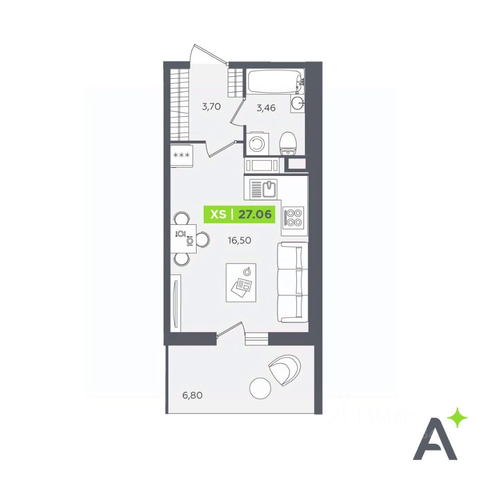 Общая площадь27,06 м²