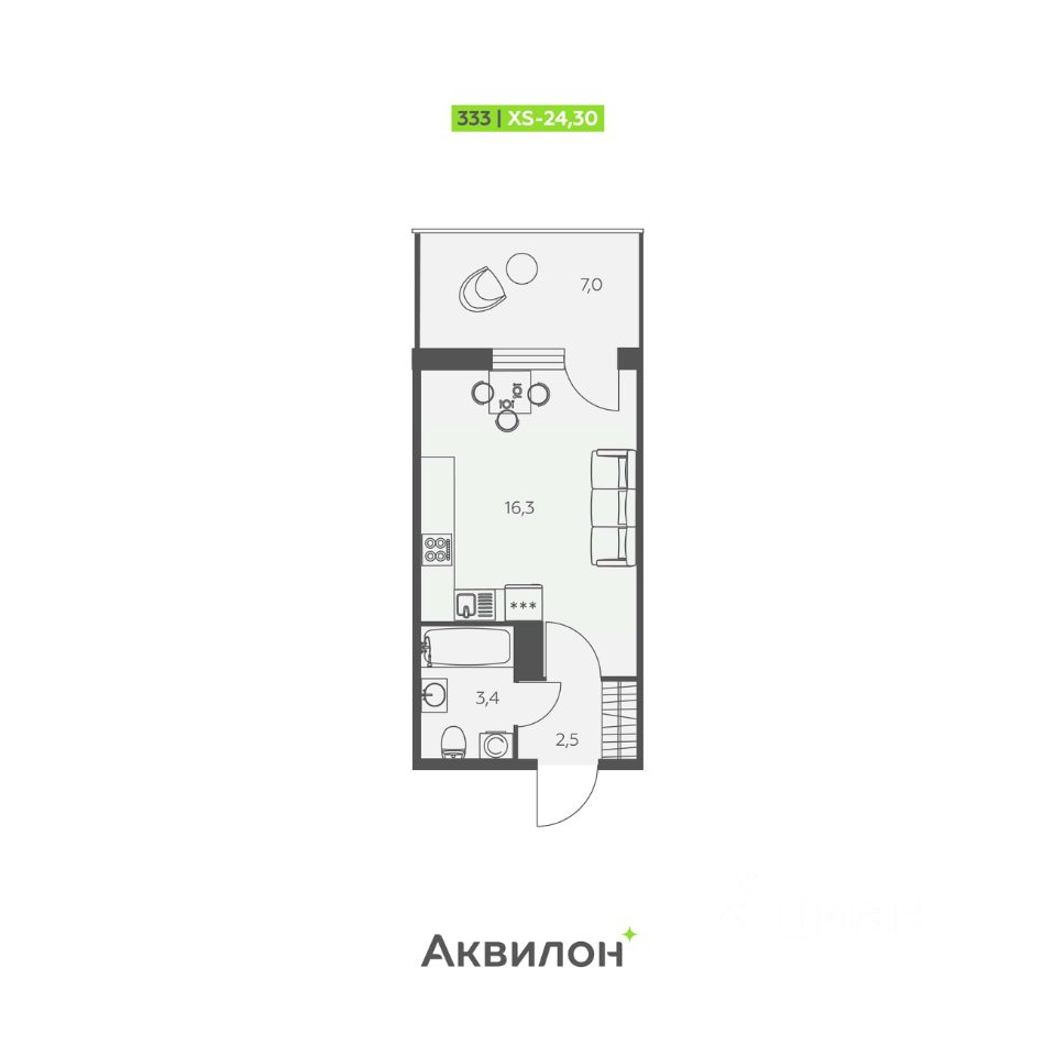 Общая площадь24,3 м²