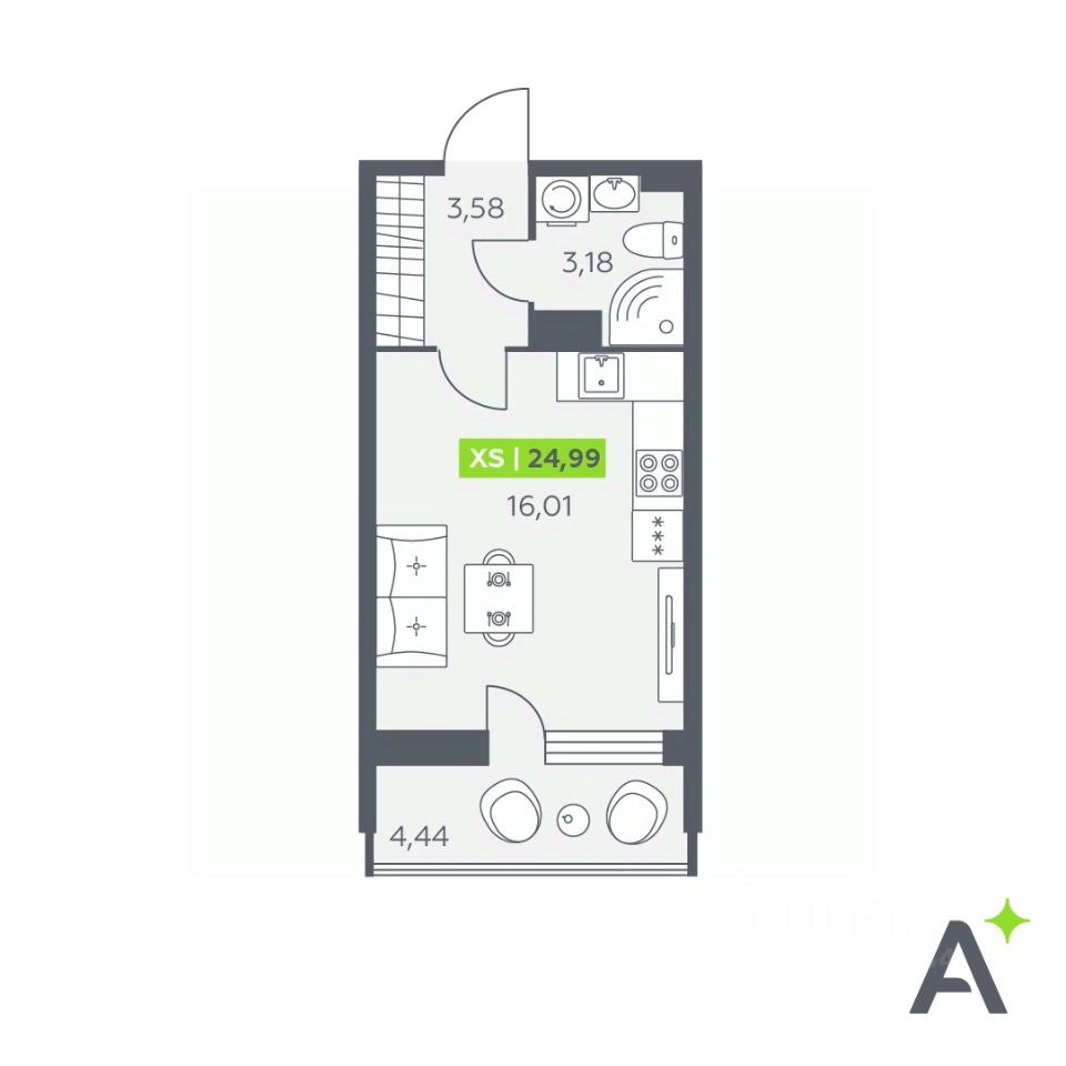 Общая площадь24,99 м²