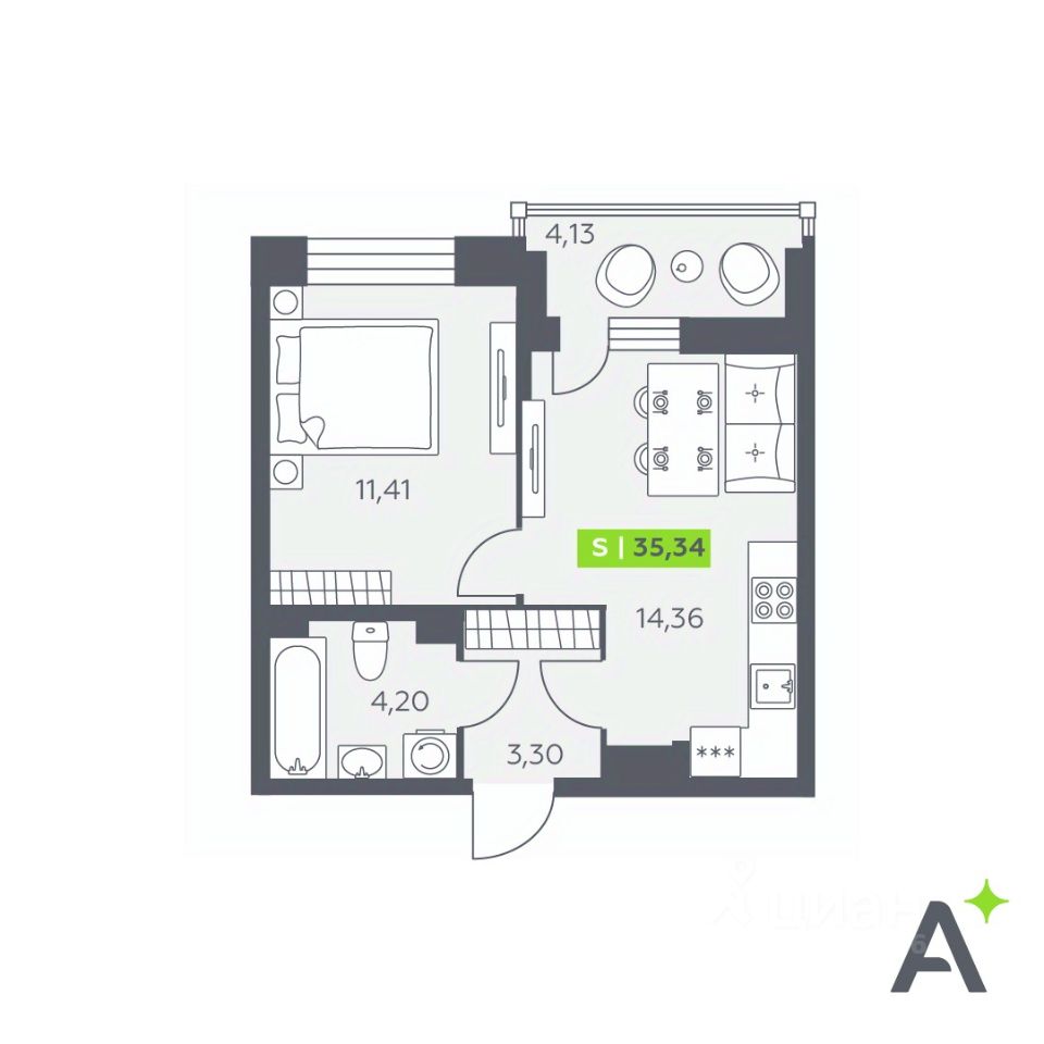 Общая площадь35,34 м²