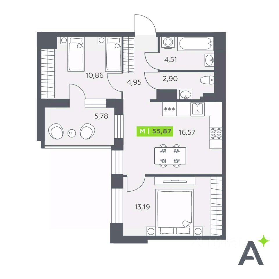 Общая площадь55,87 м²